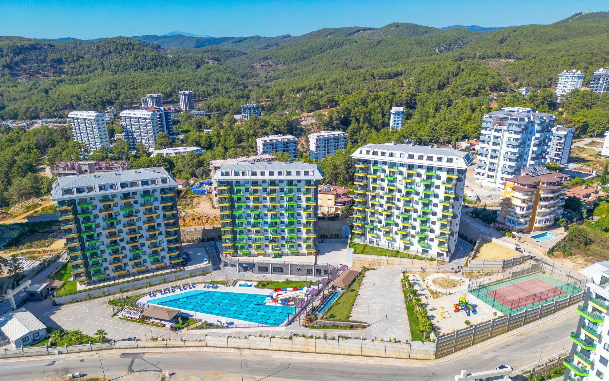 Авсаллар – один из самых зеленых районов Алании, вокруг много сосновых лесов, и в воздухе ощущается тонкий аромат хвои. Как известно, активно выделяющие сосны фитонциды ионизируют воздух, убивают вредные бактерии. Так что дышаться в новом доме вам будет по-настоящему легко.