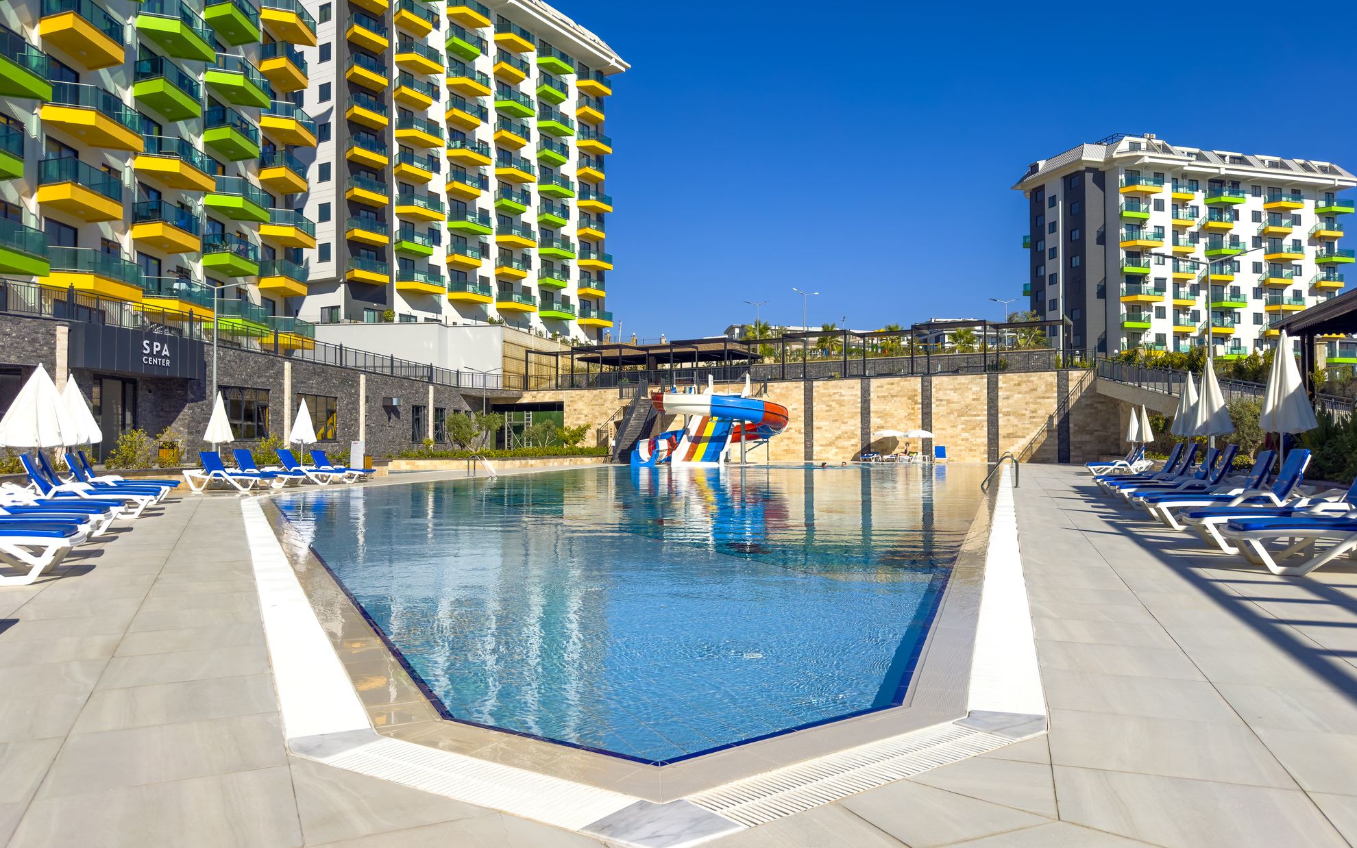 - Два бассейна с горками