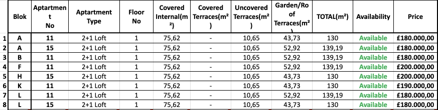 Комплекс предлагает широкий выбор апартаментов, включая современные студии и просторные квартиры 2+1 с доступом на крышные террасы.
